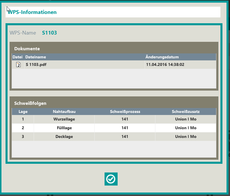 Dabei gilt grundsätzlich, dass systemseitig eine Schweißnaht als fertig geschweißt angenommen wird, sobald ein Mitarbeiter diese Naht gestempelt hat. Es ist durchaus möglich, dass der Naht noch weitere Lagen hinzugefügt werden müssen, dies obliegt aber der Verantwortung des Schweißfachpersonals.