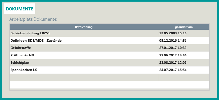 Das Plugin Dokumente stellt Dokumente zu Arbeitsplätzen bzw. Benutzergruppen bereit. Über ein Doppelklick kann das Dokument oder ein weiterer Auswahldialog geöffnet werden.