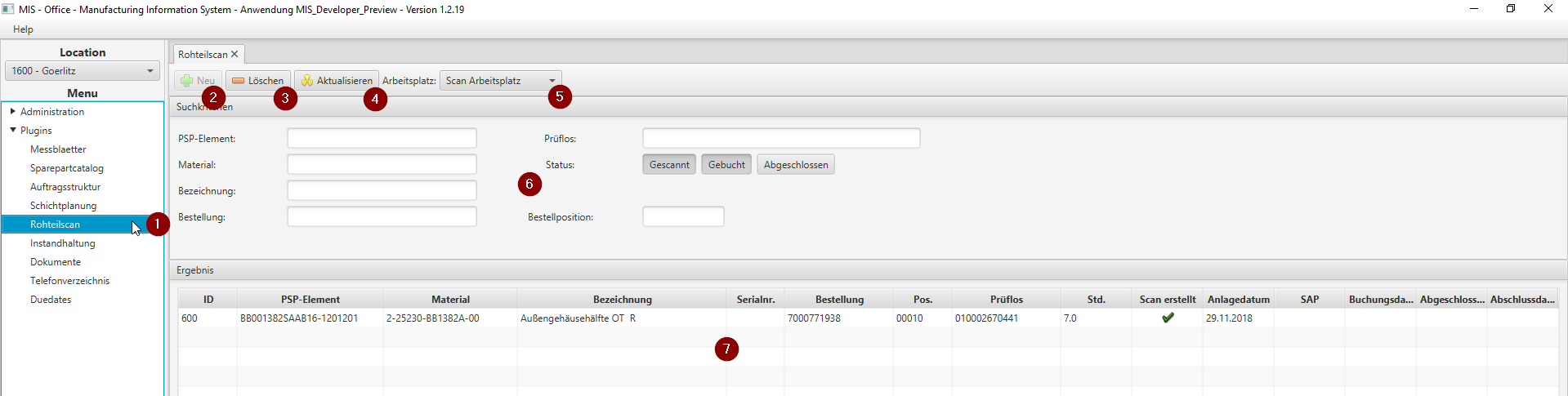 Dieses Plugin bietet unterstützt den Prozess Rohteilscan von Gehäusebauteilen und Schmiederohlingen und gibt Zugriff auf folgende Informationen/ Aktionen: